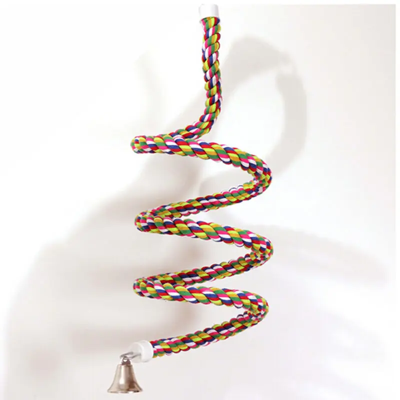 Name: Juguete de percha para pájaros de colores, cuerda de tela de algodón para loros, lámpara tipo jaula para Bar, soporte en espiral con campana, suministros para pájaros, juguete para mascotas, novedad